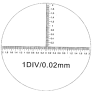 3、本顯微鏡對準觀察物在調焦清晰時,本顯微鏡刻度尺寸上的1小格等于實際尺寸0.02mm;0~1等于實際尺寸1mm,測量范圍0-4mm